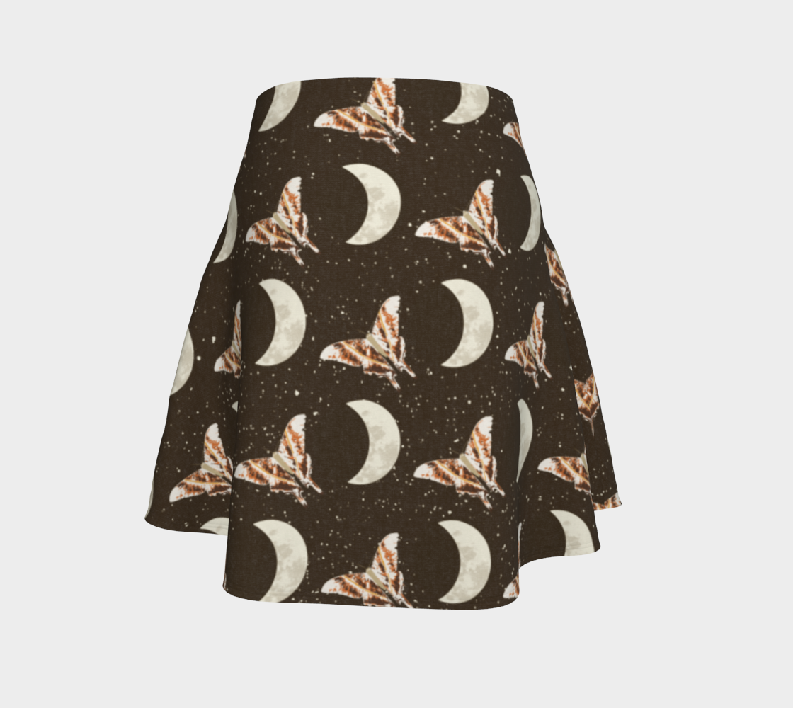 Twirl and show off your love of majestic moths in the moonlight. Embrace the night in your custom printed flare skirts! With a classic A-line cut, this skirt falls to mid thigh, giving you the freedom to twist, bend, and twirl while feeling fabulous at the same time. Prints on flare skirts are permanent and amazingly vibrant.